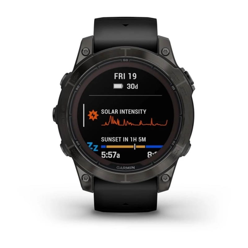 Dzięki ładowaniu energią słoneczną możesz uzyskać nawet 22 dni działania baterii w trybie zegarka pod warunkiem wystawienia urządzenia na słońce na co najmniej 3 godziny dziennie (50 000 luks.) oraz maks. 73 godz. działania baterii w trybie GPS (przy założeniu użytkowania przez cały okres przy oświetleniu 50 000 luksów).