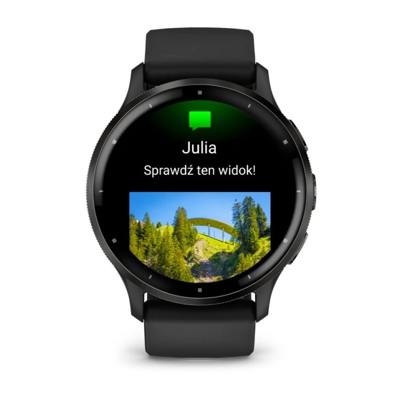 Zegarek Venu 3 — specjalnie zaprojektowany tak, aby zapewniać zaawansowane funkcje monitorowania zdrowia i kondycji oraz możliwość wykonywania połączeń i wysyłania wiadomości1 — jest czymś więcej niż zwykłym zegarkiem – to Twój osobisty trener na nadgarstku, który wesprze Cię w realizacji celów.