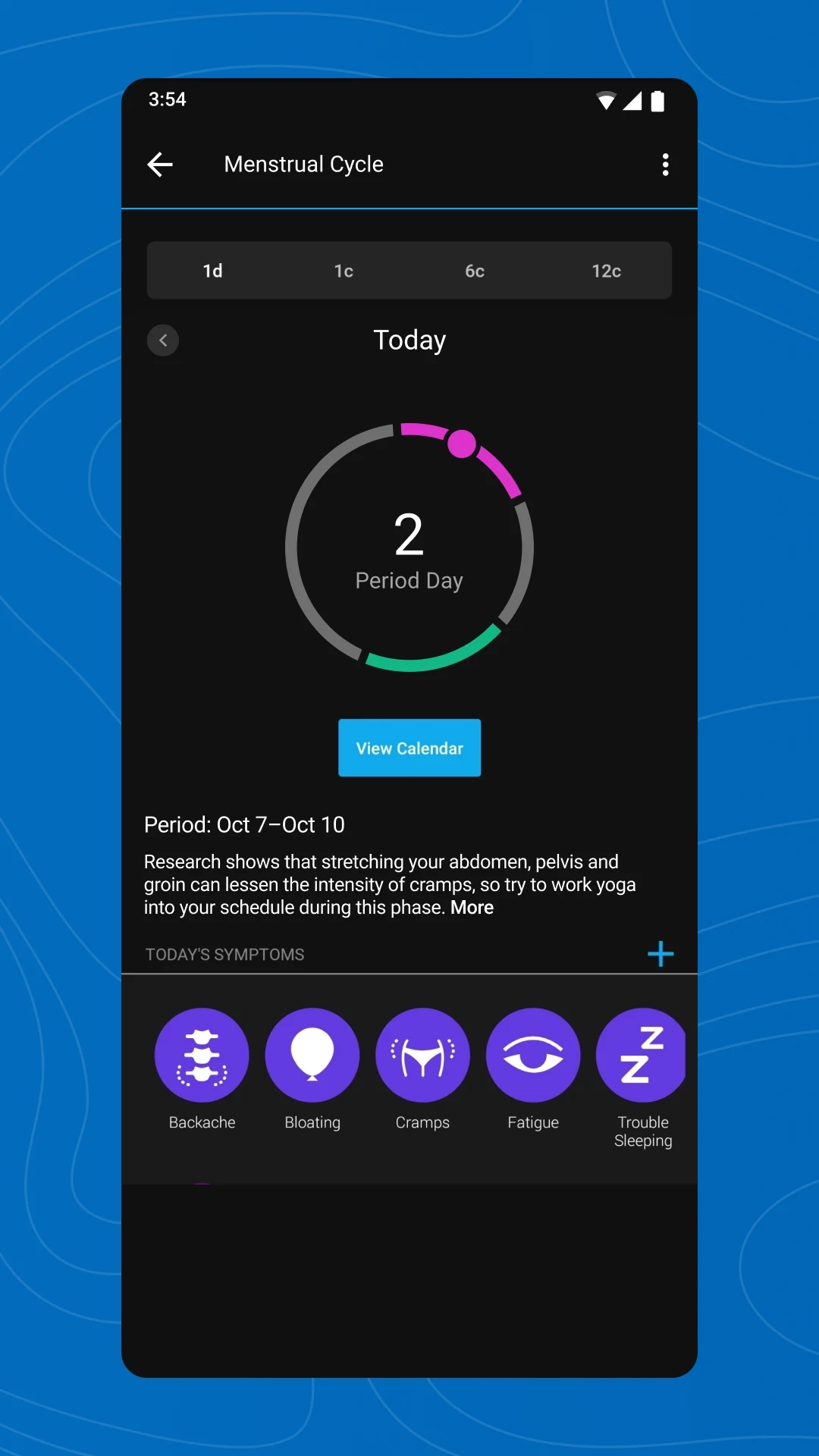 Korzystaj z aplikacji Garmin Connect by monitorować cykl menstruacyjny lub przebieg ciąży. Zapisuj objawy, otrzymuj wskazówki dotyczące ćwiczeń, odżywiania i wiele innych.