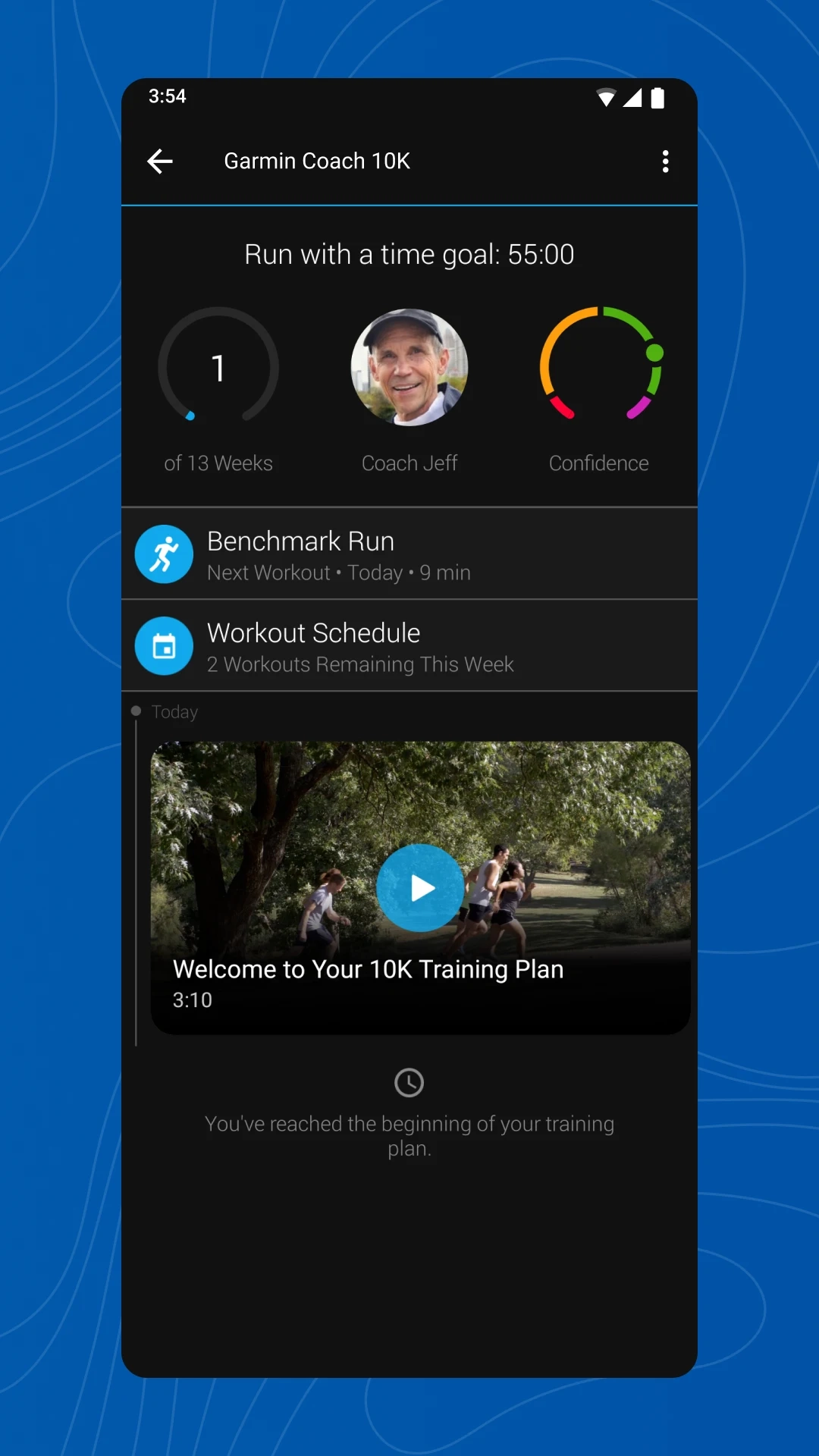 Trenuj pod kątem swojego pierwszego wyścigu na 5 km, 10 km lub półmaratonu z bezpłatnymi fachowymi poradami i dynamicznym planem treningowym, który dostosowuje się do Twoich celów i wyników. Treningi synchronizują się bezpośrednio z zegarkiem.