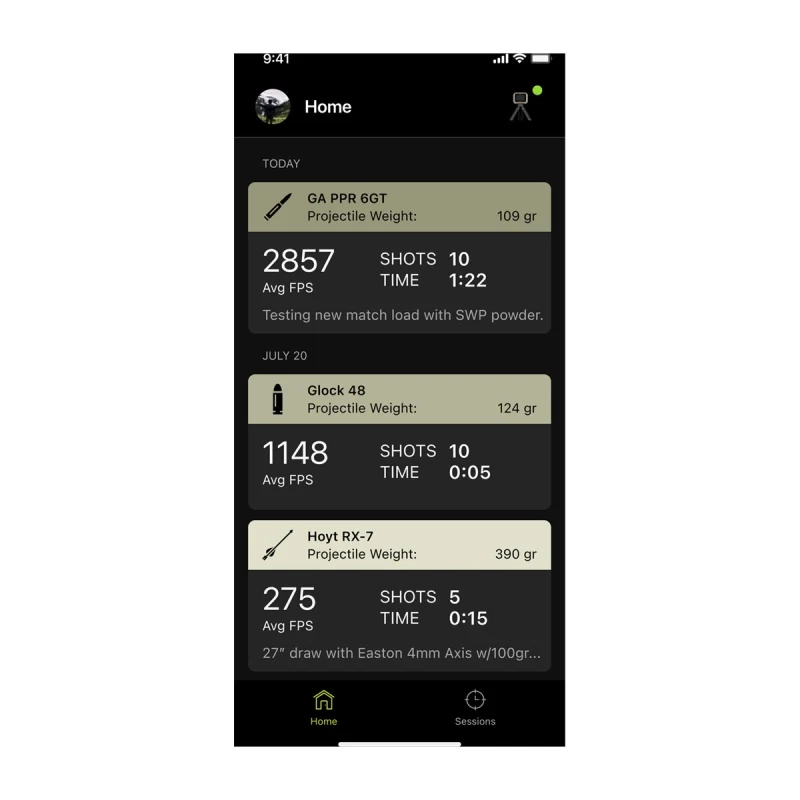 Sprawdź dane wyjściowe — takie jak m.in. prędkość, odchylenie, rozrzut czy energia kinetyczna — dla każdego strzału (wymagane jest użycie chronografu Xero C1 Pro).