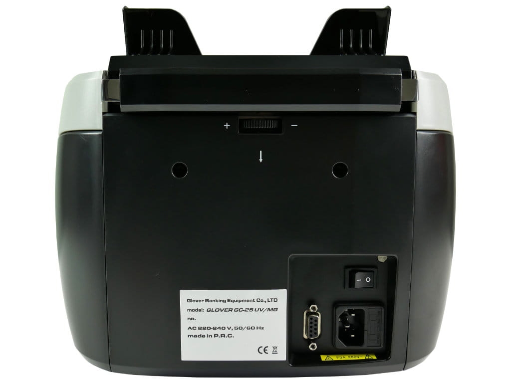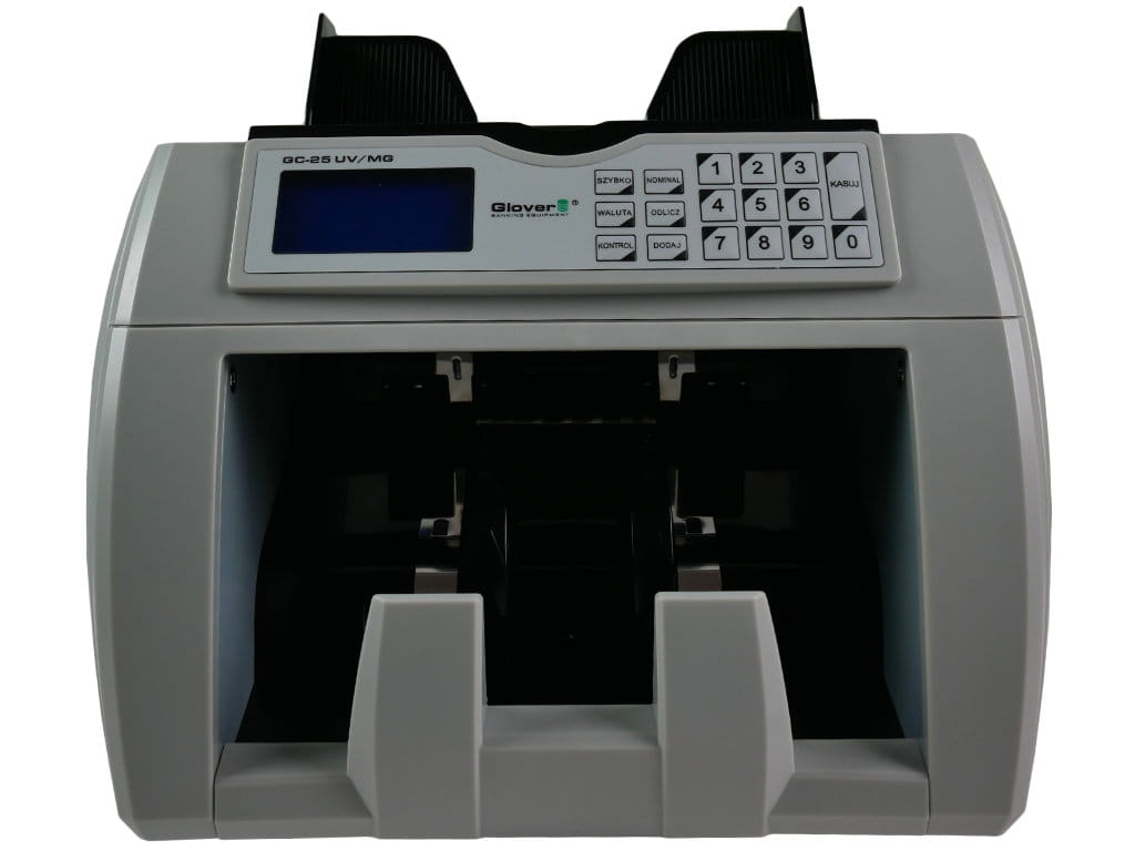 Liczarka Glover GC-25 UV/MG jest niezwykle sprawnym i bezawaryjnym urządzeniem do przeliczania gotówki. Sprawdzi się wszędzie tam, gdzie liczy się szybkość i niezawodność pracy. Komunikacja z liczarką do pieniędzy odbywa się w języku polskim, co znacznie ułatwia obsługę sprzętu. Wysokiej klasy urządzenie wykorzystuje szereg funkcji kontrolnych do detekcji fałszywych znaków pieniężnych. Po dokonaniu wyboru przeliczanej waluty za pomocą jednego przycisku (np. PLN, EUR, CHF, USD, GBP), urządzenie automatycznie dostosowuje do niej sposób kontroli autentyczności znaków pieniężnych i inne ustawienia. Komfort i bezbłędność pracy zapewniają systemy wykrywania podwójnych banknotów i weryfikacji rozmiaru. Niezwykle wygodnym i unikalnym rozwiązaniem jest tryb liczenia nominałowego. Wystarczy wprowadzić do urządzenia informację o aktualnie liczonym nominale, by uzyskać wartość kwoty znajdującej się w przeliczanym pliku banknotów.